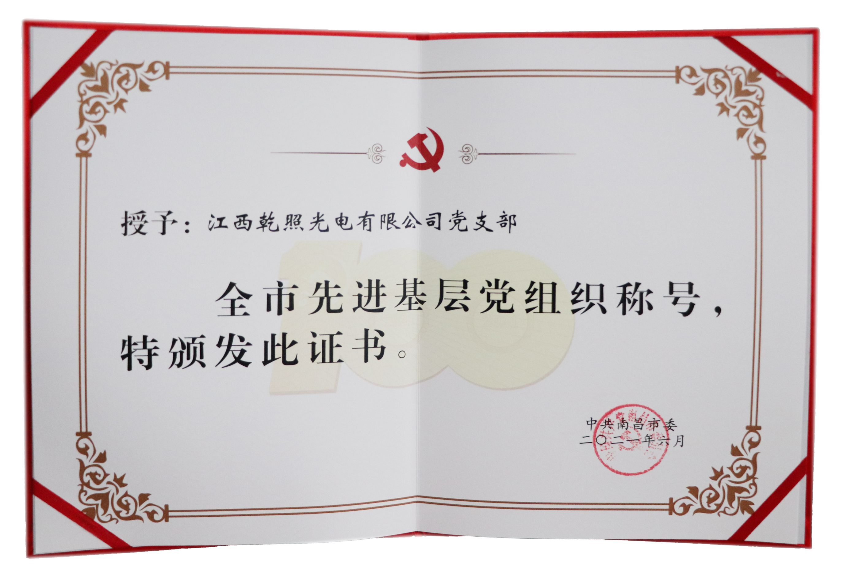 江西乾照光電黨支部于2018年6月26日正式成立,值此建黨100周年之際,獲此殊榮,感到無比榮耀,這也表明了南昌市委市政府對(duì)江西乾照光電黨支部在黨建工作上的肯定與褒獎(jiǎng)。
