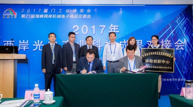 乾照光電成為“半導體光電材料及其高效轉換器件協同創新中心分平臺” 來源: 發布時間:2017-04-27 2017年4月13日,乾照光電總經理蔡海防先生出席了由廈門市科學技術局主辦,福建省光電行業協會、廈門市光電子行業協會等多家單位聯合承辦的“2017年兩岸光電產業科技成果對接會”,共同見證 “半導體光電材料及其高效轉換器件協同創新中心廈門乾照光電股份有限公司分平臺”的揭牌儀式,并代表公司與廈門大學簽署合作協議。此分平臺的設立,有利于提高公司與廈門大學之間的協同創新能力,不斷增強企業的技術創新能力,促進企業持續高速發展。