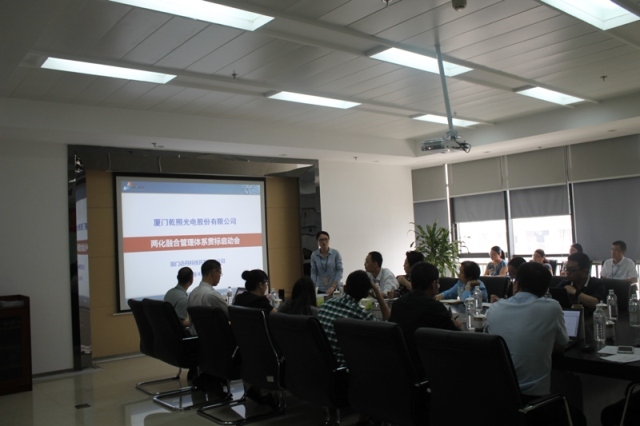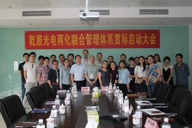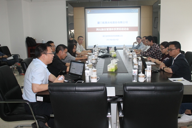 為響應國家推動企業兩化深度融合的號召和提升企業轉型升級的需求, ,廈門乾照光電股份有限公司(以下簡稱“乾照光電”)于2017年4月19日在公司會議室舉行兩化融合管理體系貫標啟動大會。本次會議由乾照光電項目管理部經理劉碧霞主持,乾照光電總經理蔡海防、信息中心總監宋關坤及公司主要領導、各相關部門負責人、邁丹科技兩化融合項目組成員等共30余人出席了會議。會上,各領導分別就兩化融合貫標工作做了重要講話。