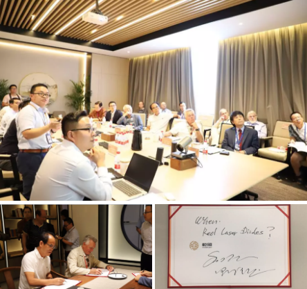 不謀全局者不足以謀一域。乾照光電積極構(gòu)筑制造業(yè)總部,大力布局化合物半導體領(lǐng)域前沿項目。在廈門、南昌、揚州布局藍綠光LED外延片和芯片、砷化鎵新型太陽能電池、3D感測激光VCSEL芯片、Mini LED和MicroLED芯片規(guī)模化量產(chǎn)等前沿產(chǎn)業(yè)項目。中村教授對乾照光電未來的規(guī)劃表示贊賞,他說,乾照光電已經(jīng)擁有了全色系的LED產(chǎn)品,這是很大的優(yōu)勢,相信公司一定會有很好的前景,同時也勉勵乾照光電年青的科研團隊要“Stay hungry”(保持對知識的渴望)。中村教授離開公司前,寫下了 “When Red Laser Diodes?”的寄語,激勵乾照光電要始終走在產(chǎn)業(yè)的最前沿。