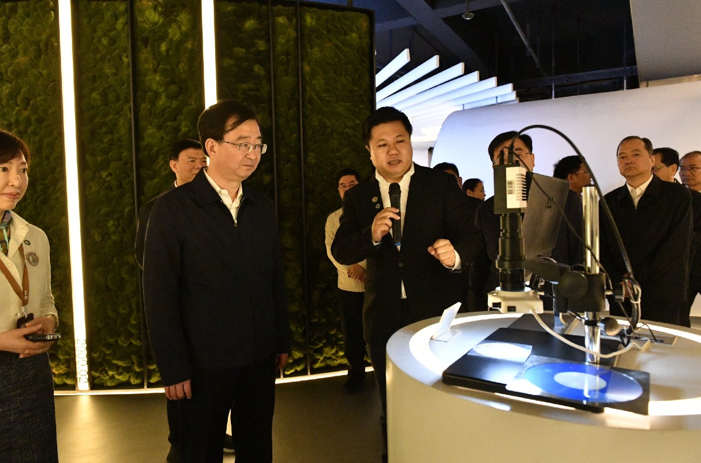 在公司展廳,王書記認真聽取了金章育關于公司發展情況的匯報。乾照光電擁有全球最大的砷化鎵化合物半導體芯片生產基地,成長性位居中國30多家LED相關A股上市公司之首,這引起了王書記的濃厚興趣。他詢問了公司的技術研發投入情況,當了解到公司每年都投入大量資金用于技術研發的情況后,他對乾照光電依靠技術創新驅動企業發展的戰略表示了高度的肯定和贊許。