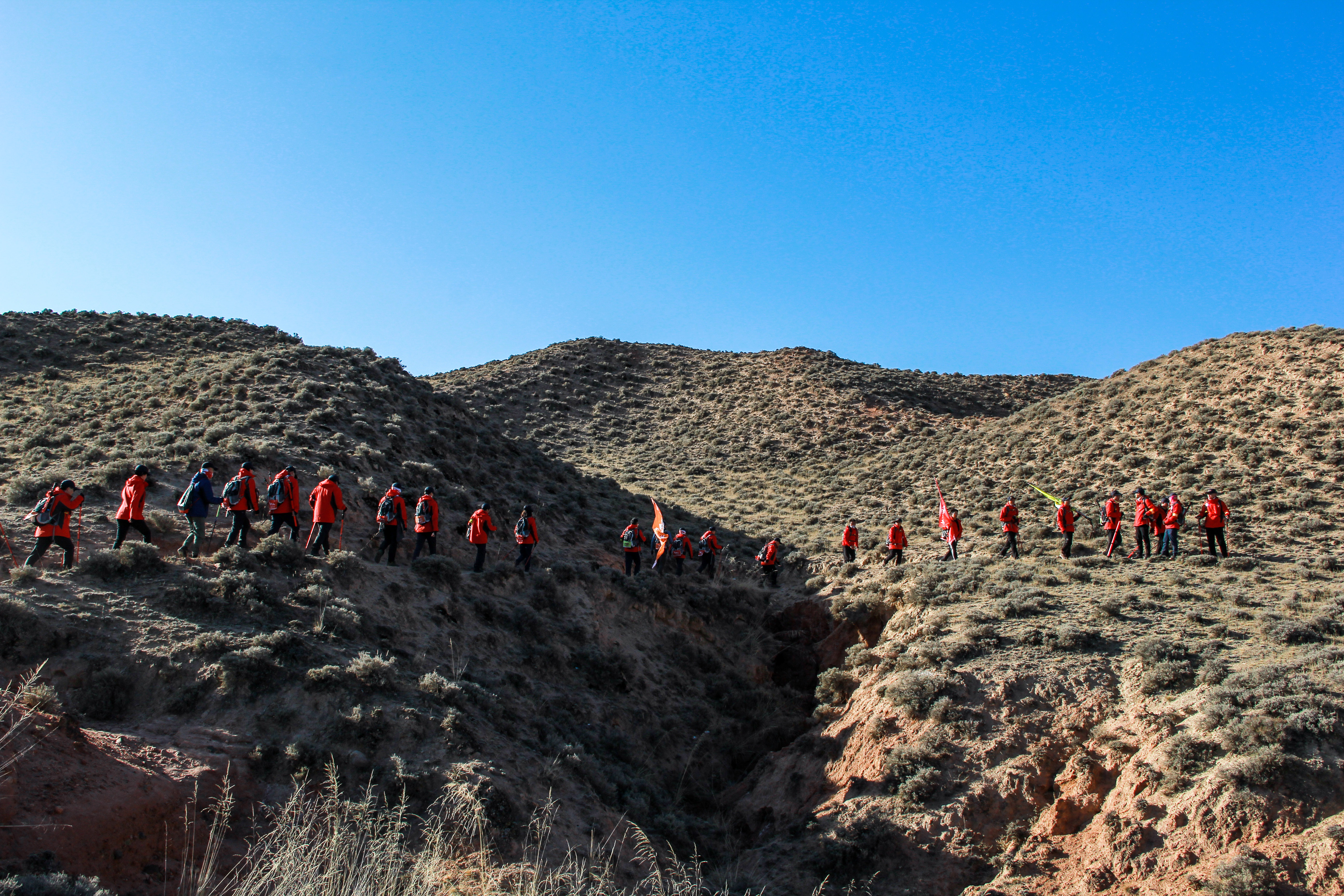 征途從平山湖擱井臺出發,以沙坡小鎮、羊臺山為營地,最終到達壕哇沙漠,縱穿丹霞、濕地、戈壁、沙漠四大險峻地貌。