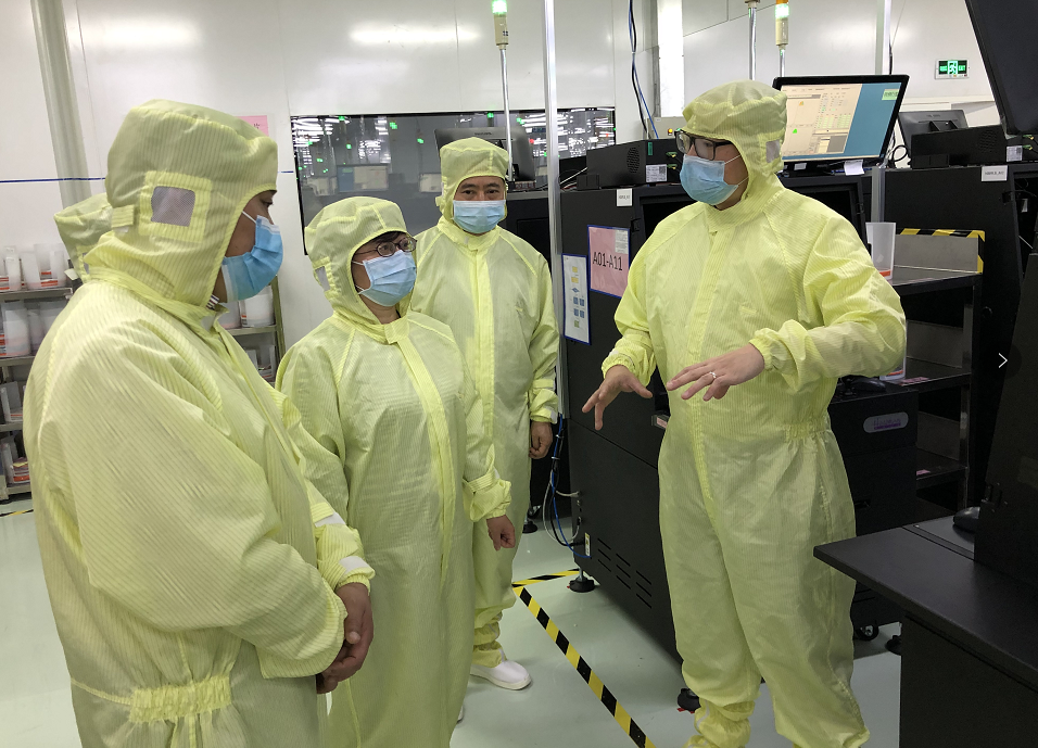 在公司展廳,陳文戎向調(diào)研組一行介紹了公司發(fā)展歷程、生產(chǎn)經(jīng)營狀況以及產(chǎn)品技術(shù)優(yōu)勢和應(yīng)用領(lǐng)域。在車間,調(diào)研組一行觀摩了外延片生產(chǎn)相關(guān)工藝流程及芯片點(diǎn)測、分選流程,對公司的現(xiàn)代化智能生產(chǎn)技術(shù)和設(shè)備的運(yùn)作程序給予了充分肯定。