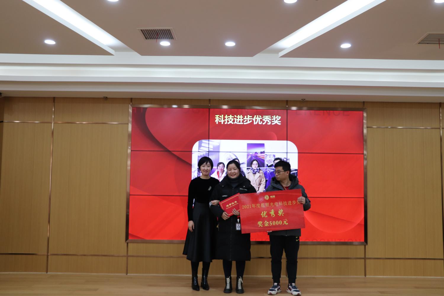 會(huì)議首先觀看了2021年度回顧視頻,而后江西乾照光電總經(jīng)理劉兆對(duì)江西乾照2021年全年度的工作進(jìn)行了匯報(bào)。表彰環(huán)節(jié)共設(shè)立9個(gè)榮譽(yù)獎(jiǎng)項(xiàng),共計(jì)44人榮獲個(gè)人獎(jiǎng),9個(gè)優(yōu)秀團(tuán)隊(duì)獲集體獎(jiǎng)。最后,副董事長兼總裁蔡海防致辭發(fā)言,他回顧了江西乾照自成立以來,一路成長的經(jīng)歷。感謝江西乾照員工的付出,并寄語江西乾照未來更美好!