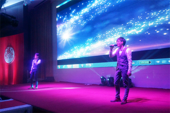 年終大會結束,經過一段音樂的短暫休息后,尾牙晚宴隆重開幕。此次尾牙晚宴是有史以來新意最多的一次,開場前的視頻展示不僅有來自揚州各個部門的新年祝福,也有模仿春晚的采訪欄目“晶晶跑年會”。節目中不僅有串燒、小品、話劇、舞蹈、更有創意類節目吸引你眼球。晚宴中多批次的抽獎環節,更是帶動了大家活躍的氣氛,小有電飯鍋、行車記錄儀、大有彩電、小米手機、蘋果手機等。更有兩段嚴格保密的表白視頻,不僅感動了兩位女主角,也驚艷了全場。