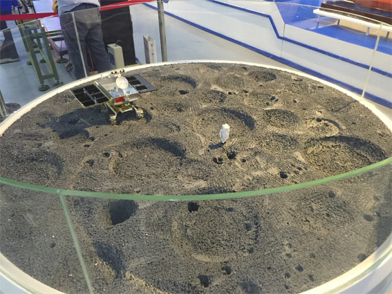 來一張特寫,右下角的這個是月兔號月球車,模型上貼的電池芯片是我們公司生產的。