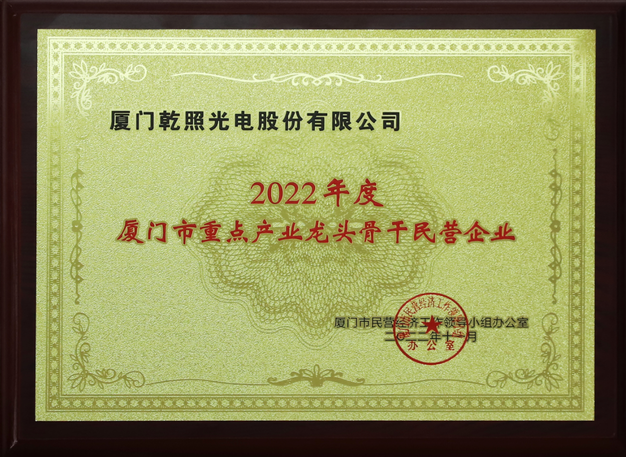 乾照光電榮獲2022廈門市民營企業100強暨龍頭骨干民企