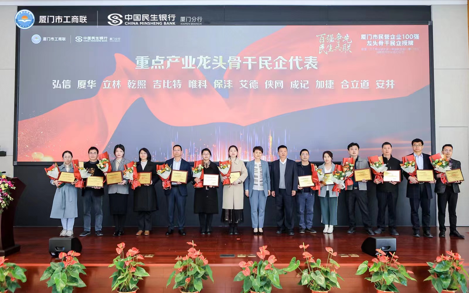 為進一步弘揚企業家精神,推動民營企業在黨的二十大精神引領下,開啟新征程,奮力新發展,2月17日上午,2022廈門市民營企業100強暨龍頭骨干民企授牌儀式在鷺島隆重舉行。廈門乾照光電股份有限公司榮獲 2022廈門市民營企業100強第74位、2022年度廈門市重點產業(半導體與集成電路)龍頭骨干民營企業。