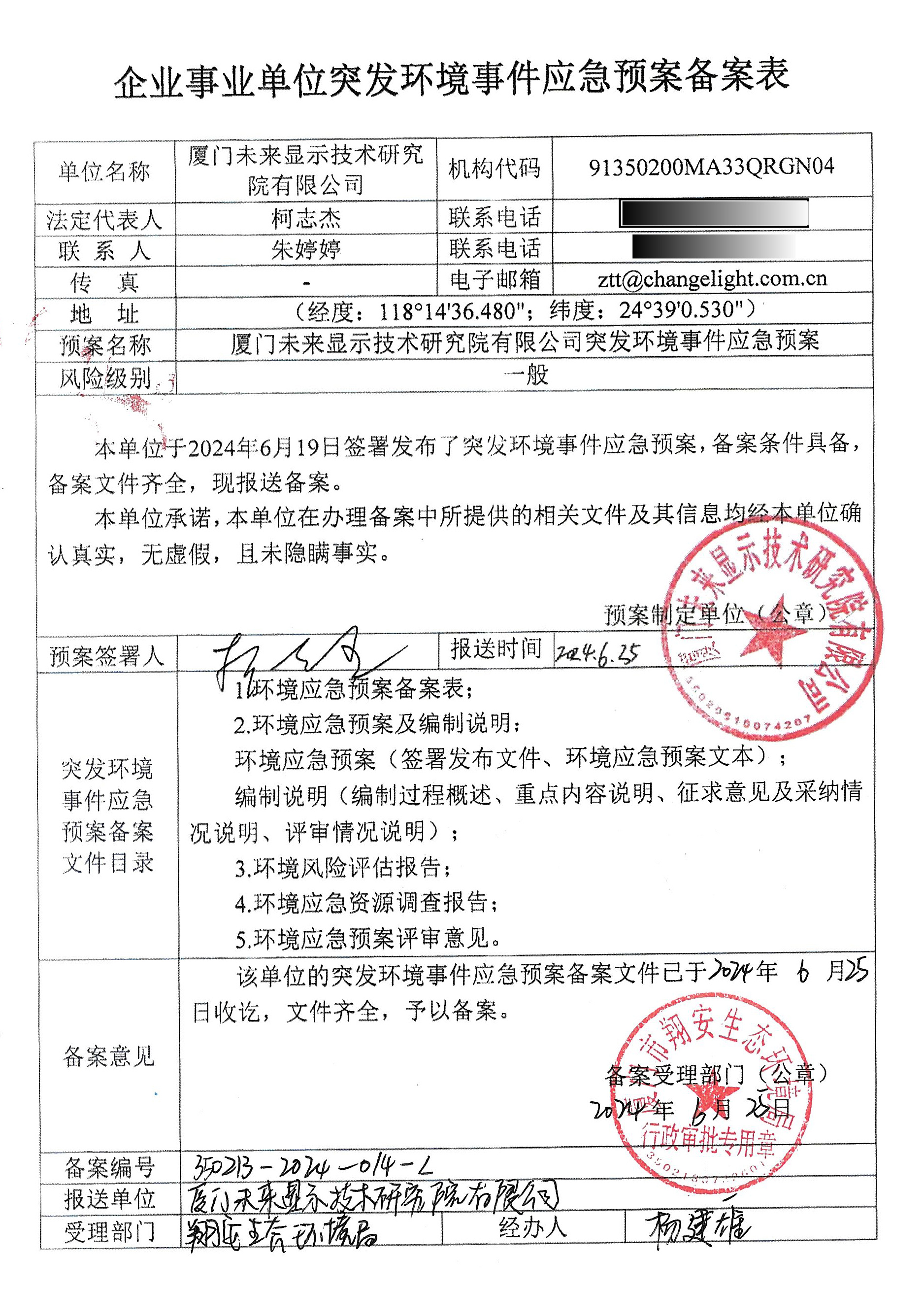 廈門未來顯示技術研究院有限公司突發環境事件應急預案