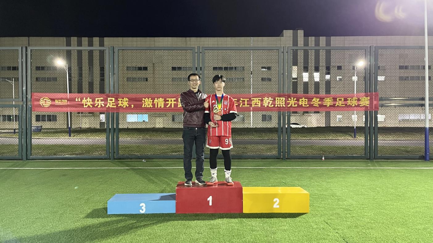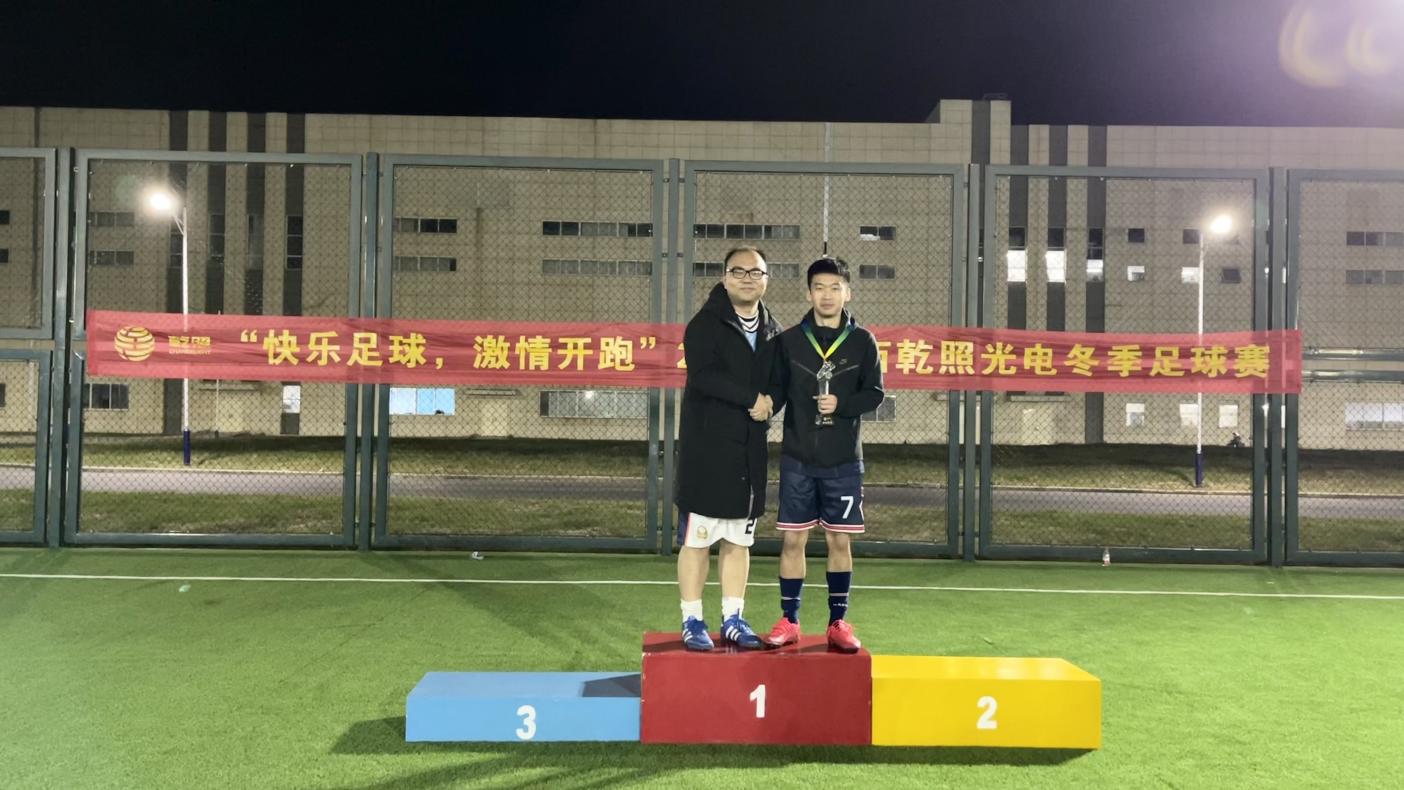 在大家?jiàn)^力拼搏下,最終,實(shí)力擔(dān)當(dāng)?shù)木C合隊(duì)斬獲了本次足球比賽的冠軍,芯片隊(duì)、外延隊(duì)分別獲得了本屆比賽亞軍、季軍的榮譽(yù)。來(lái)自綜合隊(duì)的向華罡榮獲“最佳球員”稱號(hào),芯片隊(duì)楊棟榮獲“最佳射手”稱號(hào),陳校榮獲“最佳門(mén)將”稱號(hào),三位選手獲獎(jiǎng)實(shí)至名歸!至此本屆足球比賽圓滿落幕。